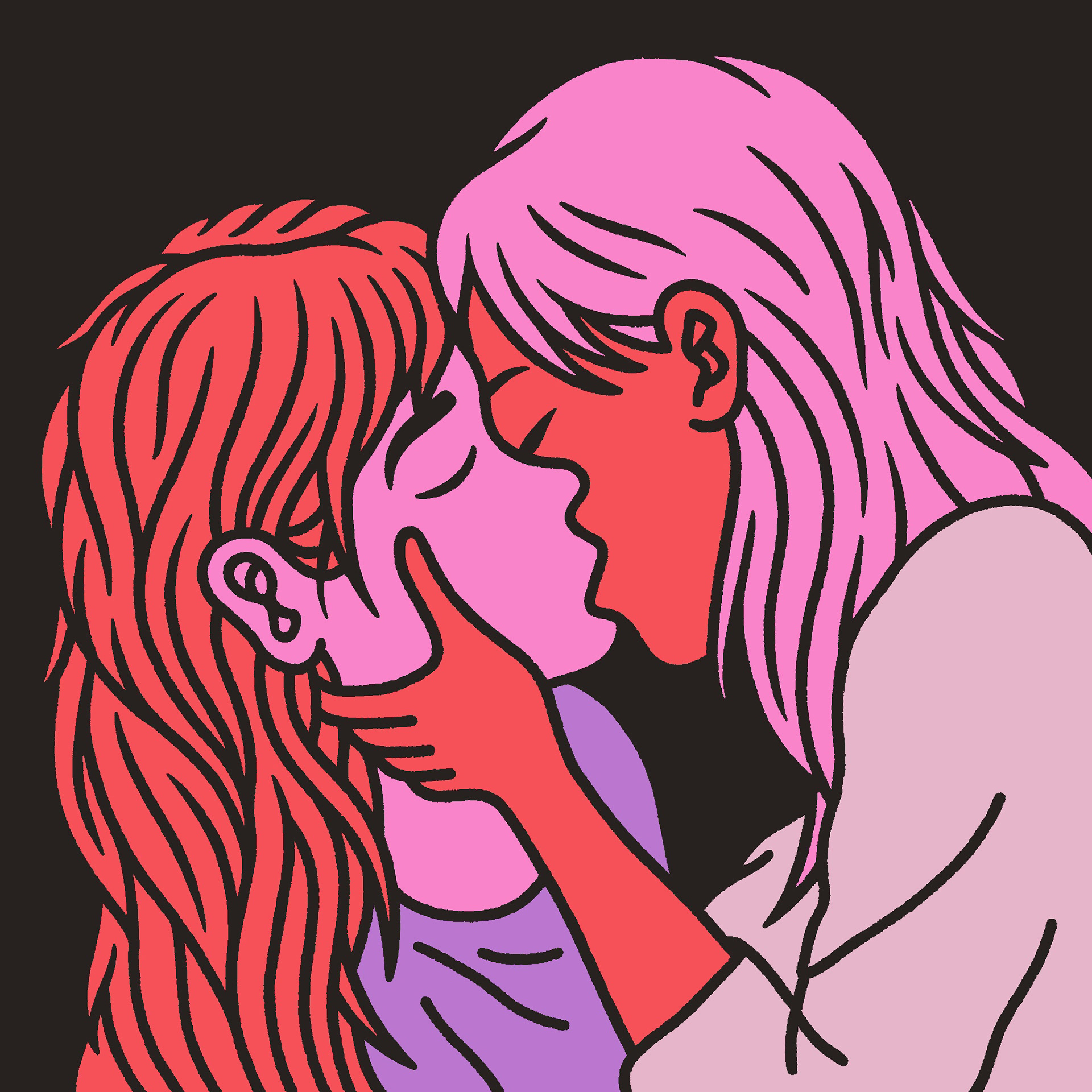 Illustration of a hot kiss for all the lesbian & transbian out there