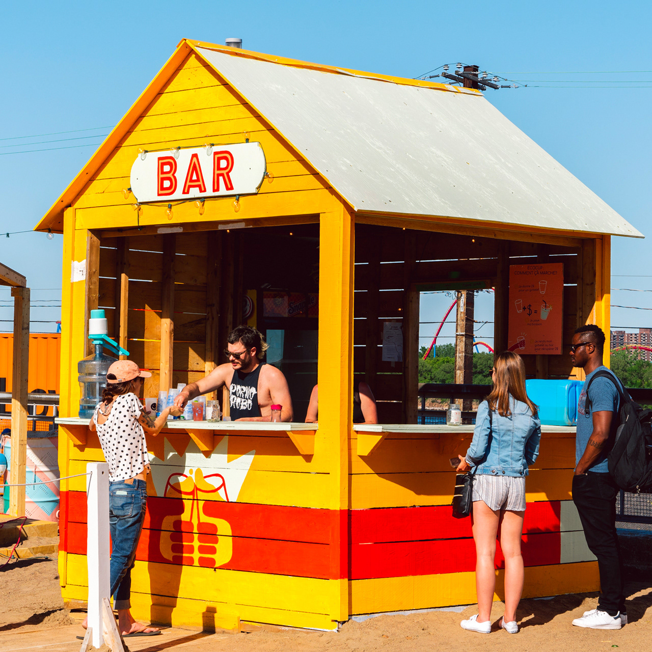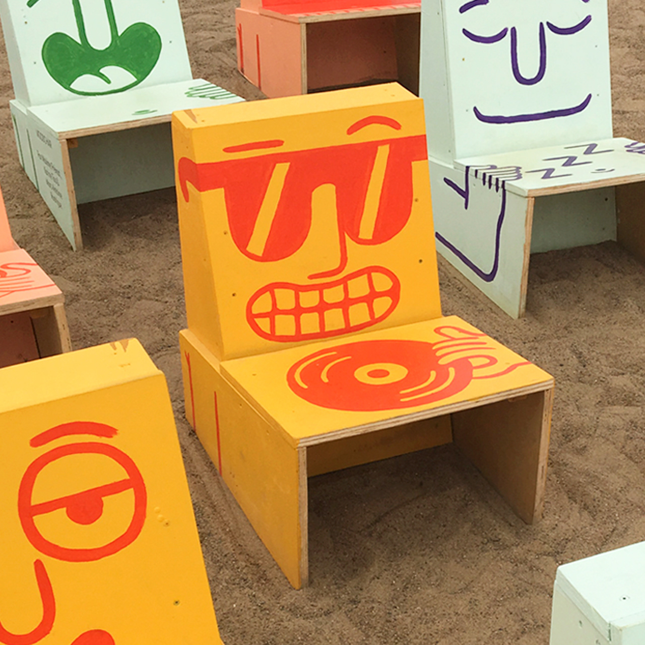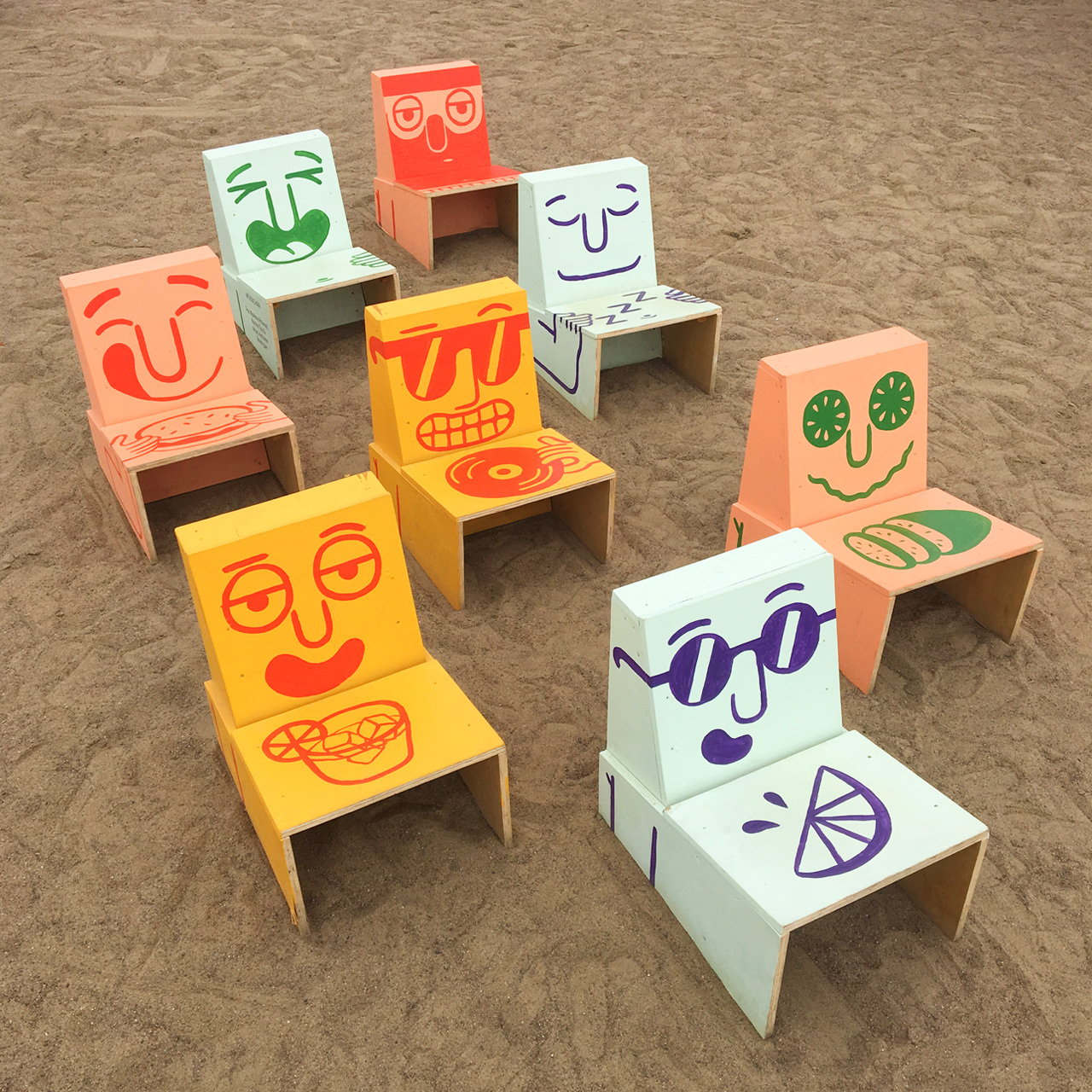 Creation of a series of chairs and murals for the 7th edition of the Village au Pied du Courant in Montreal. The theme is based on a day at the beach.
